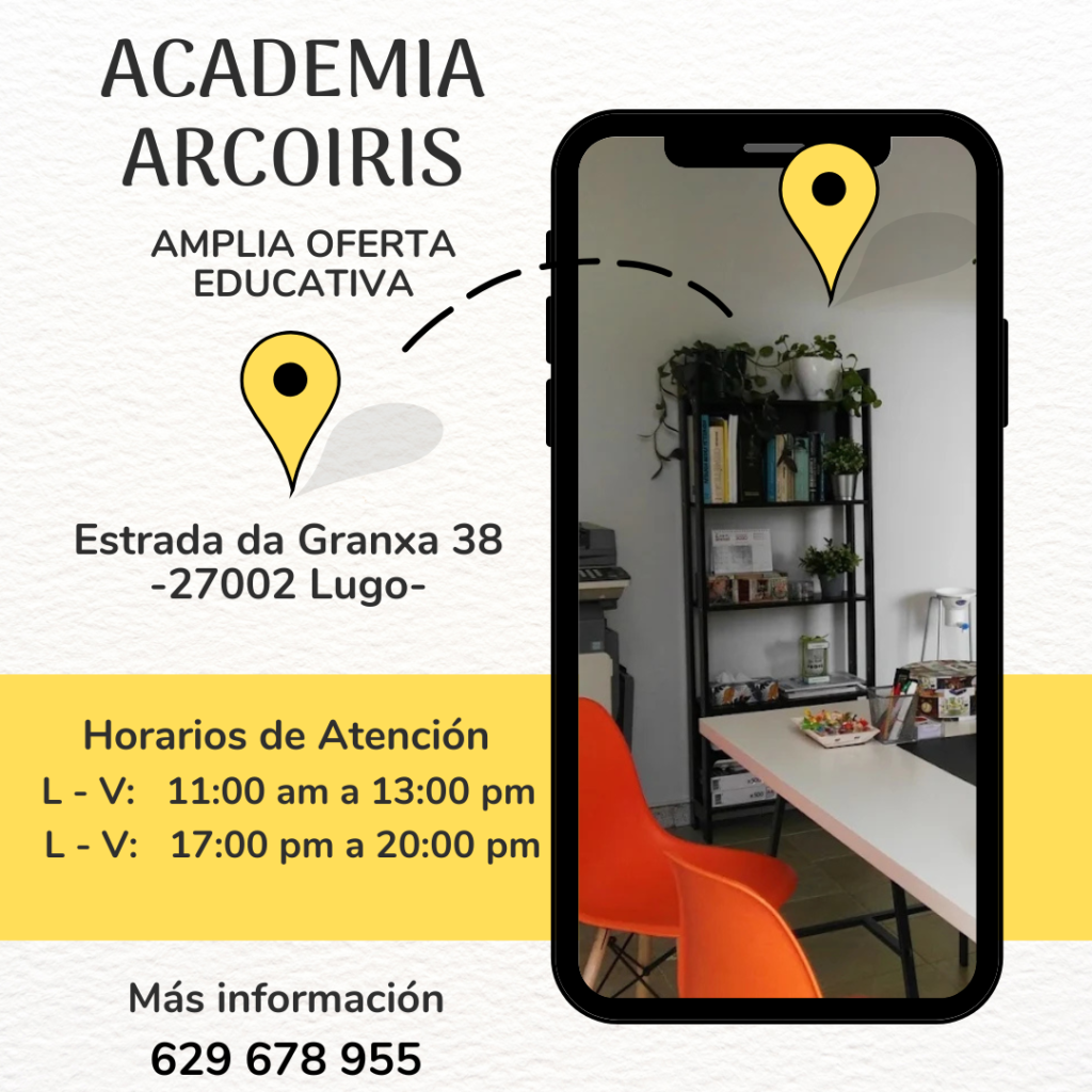 Si necesitas clases de apoyo escolar en Lugo para primaria, ESO, bachillerato o universidad, estás en el lugar ideal. Comparar decenas de academias con clases de refuerzo en asignaturas como matemáticas, inglés y ciencias en Lugo o Monforte de Lemos es más fácil con nosotros. Además, te mostramos opciones que también incluyen idiomas, talleres y atención especial para niños con necesidades específicas. Encuentra rápidamente la mejor oferta de apoyo escolar en Lugo y da a tus hijos el impulso que necesitan para mejorar en sus estudios.